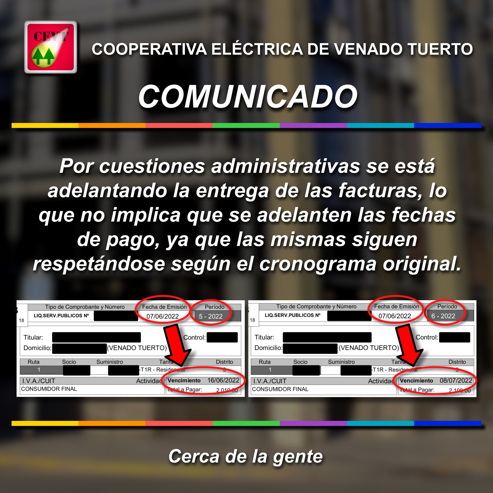 Por cuestiones administrativas se está adelantando la entrega de las facturas, lo que no implica que se adelanten las fechas de pago